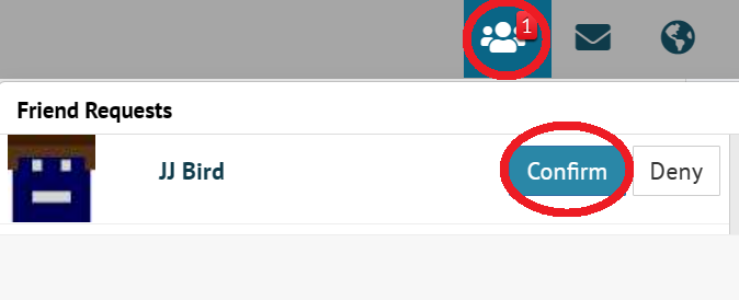 If you are to recieve a friend request, you can accept it with the "Confirm" button, meaning you are now friends with that person, or by clicking "Deny" to decline the friend request.