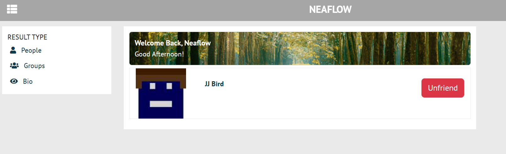 To message a Neaflow friend, click on the search box on the left menu, and type their name, then click enter.